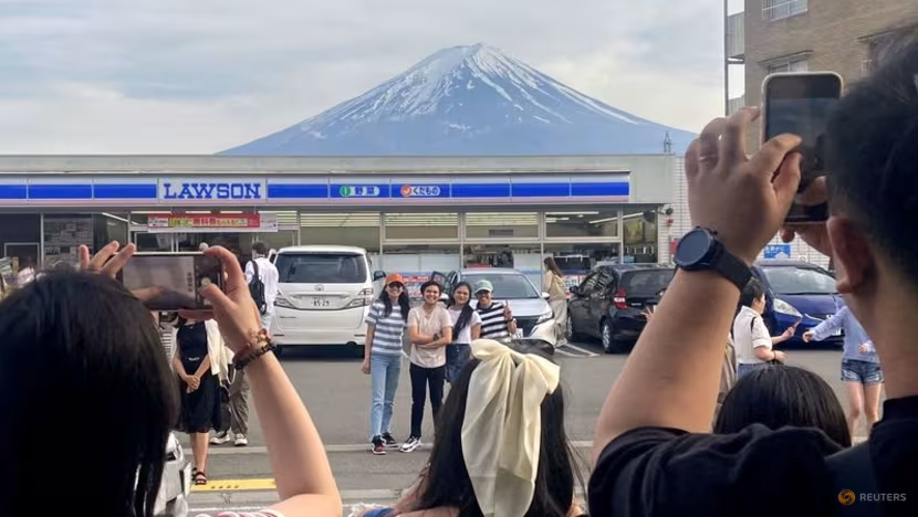 而在富士山下的那家“网红”便利店,因为太多人为了拍合影直接横穿马路,官方也架起巨大的遮挡帘,强行挡住那道“出片”的风景。